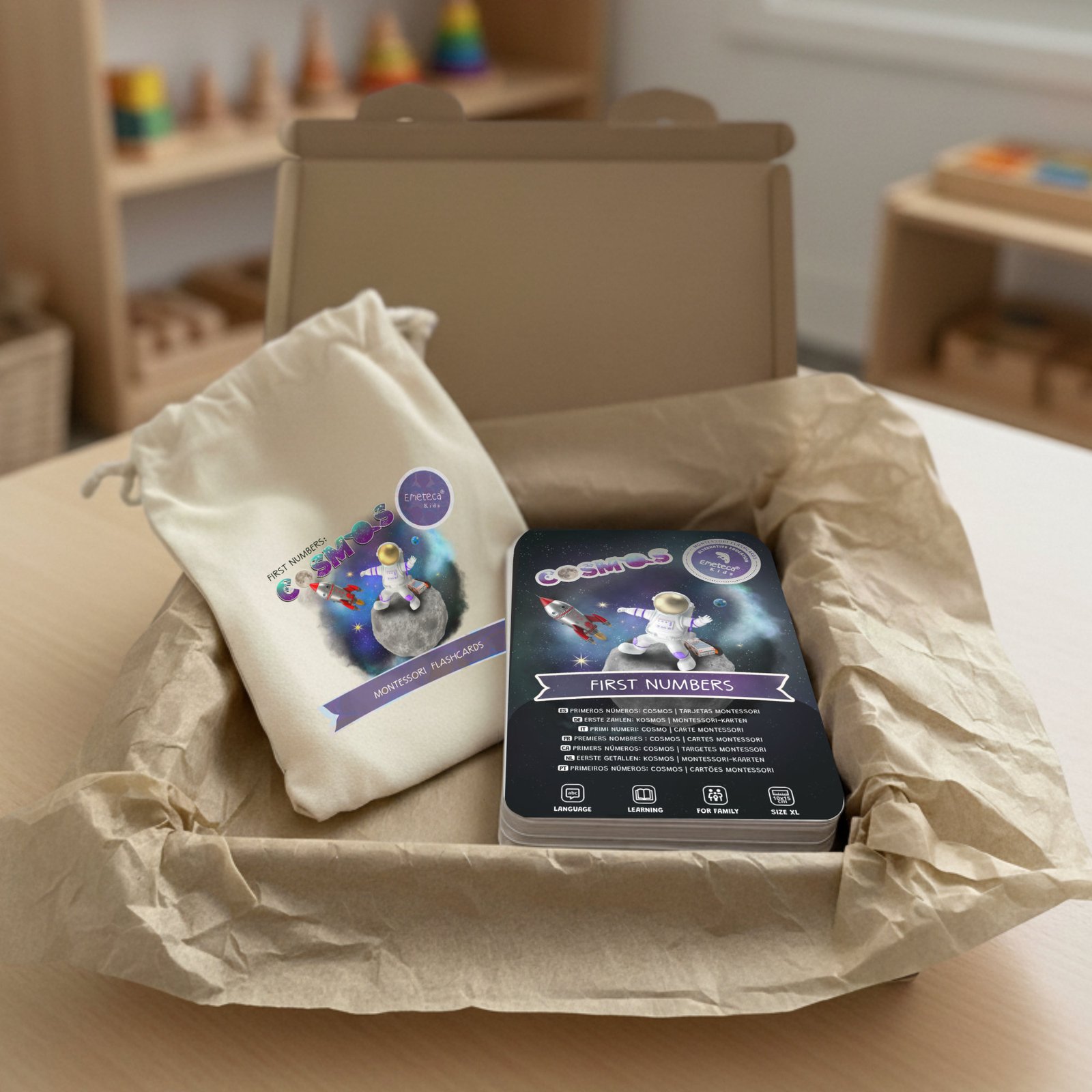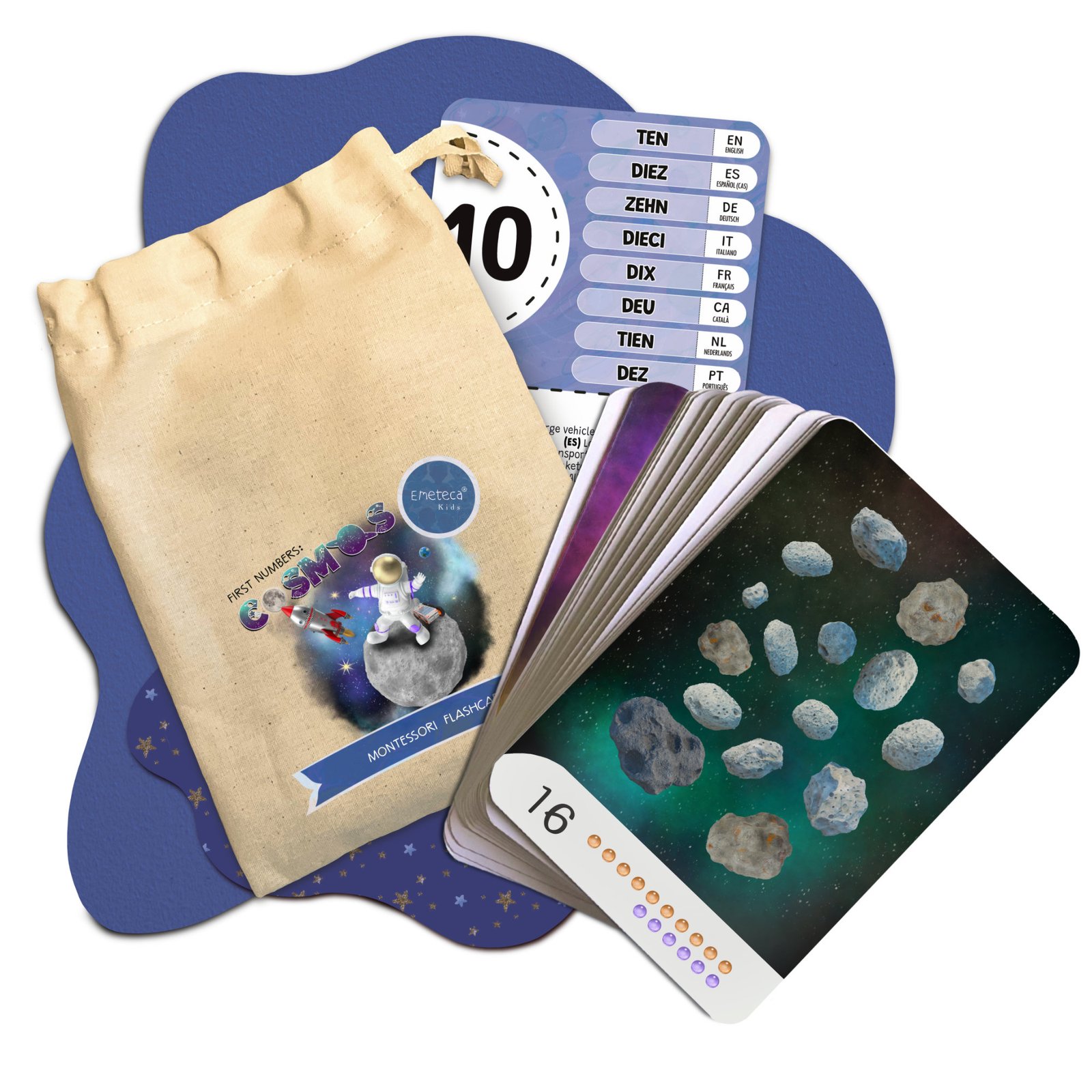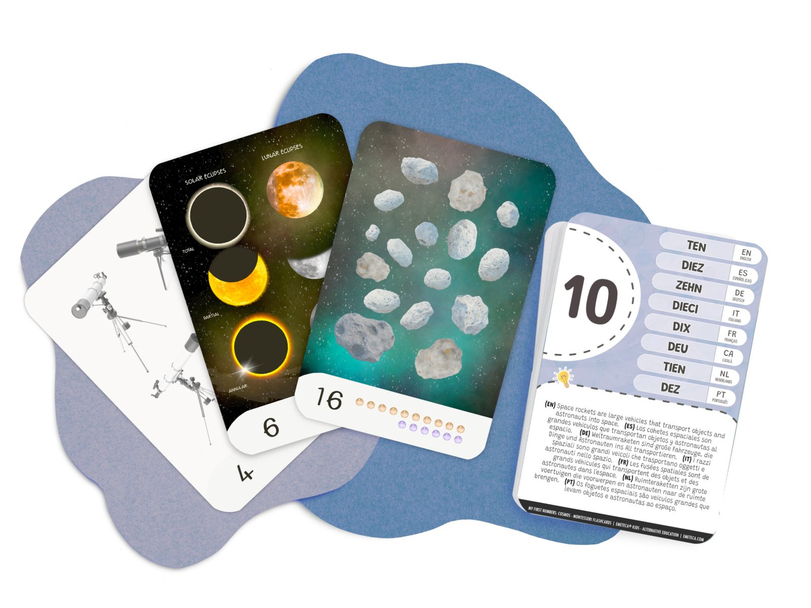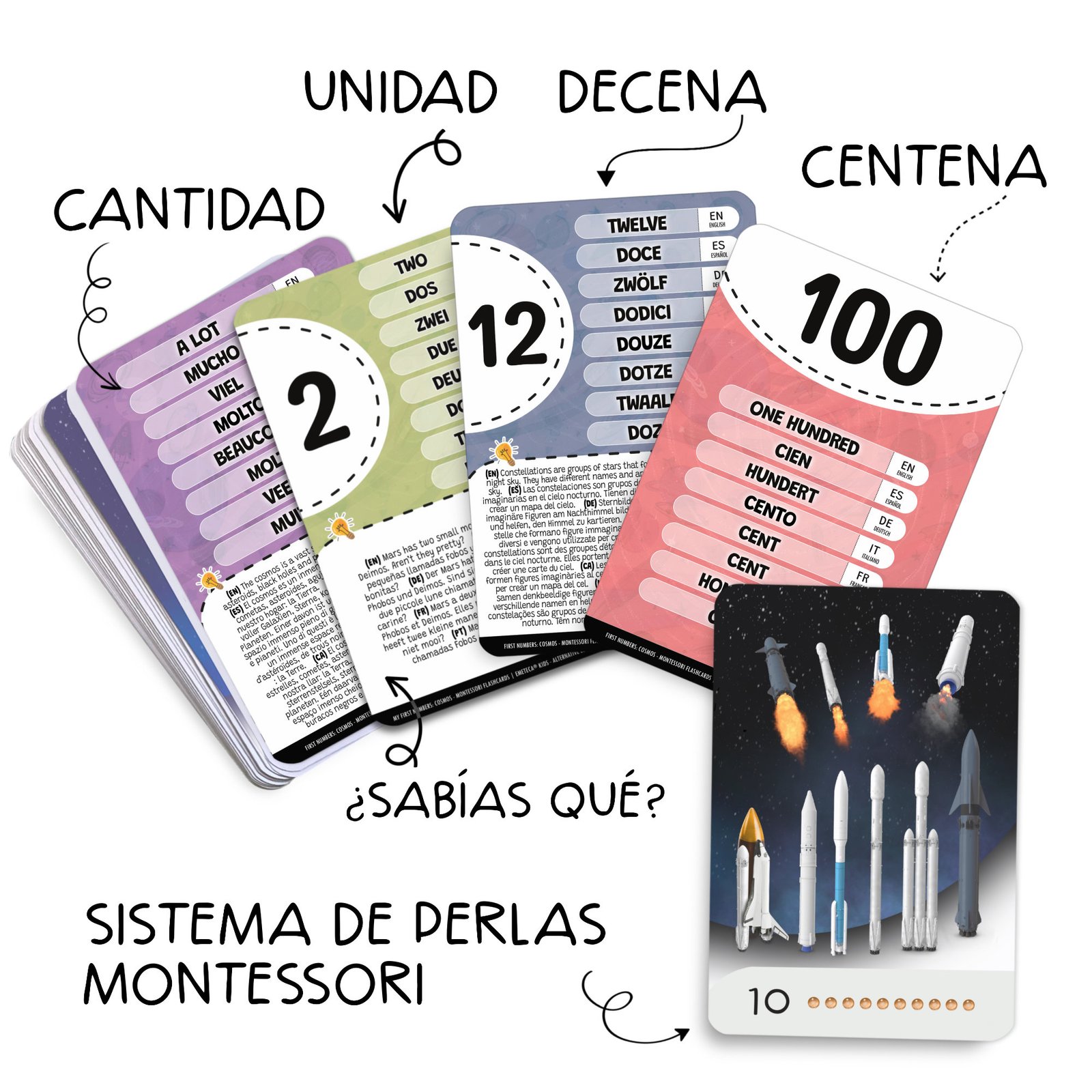 Tarjetas Montessori del Cosmos y elementos del Espacio · Colección Primeros números · Emeteca® Kids.